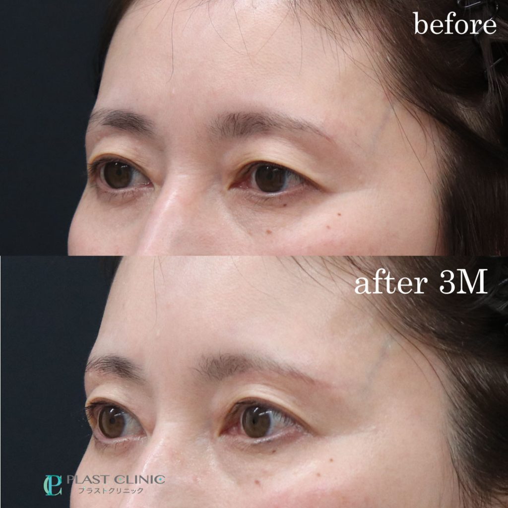 眉下切開で治療された方の術後3か月のお傷の状態を