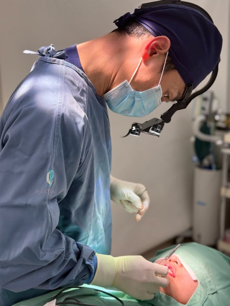 特に口唇の縫合は細かく形成外科的縫合をおこないます。